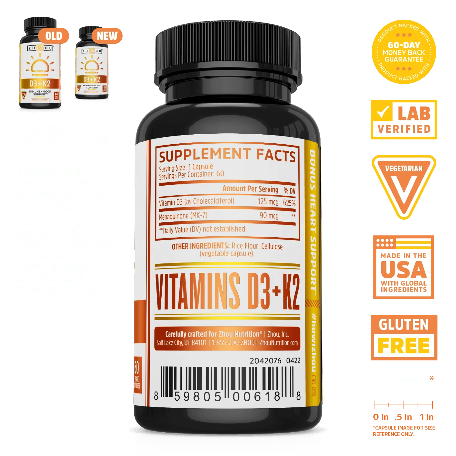 The rumors are true. Vitamins K2 and D3 were simply meant to be together. Most people know vitamin D for its incredible benefits like immune health and bone support. Many don’t realize that vitamin D needs vitamin K2 to max out those benefits. D3 can give you the benefits of "the sunshine vitamin" without the sunburn, and K2 can direct the calcium to the bones instead of joints and arteries. Our combo of D3+K2 has you covered—adding just the right amount of each vitamin for optimal results.